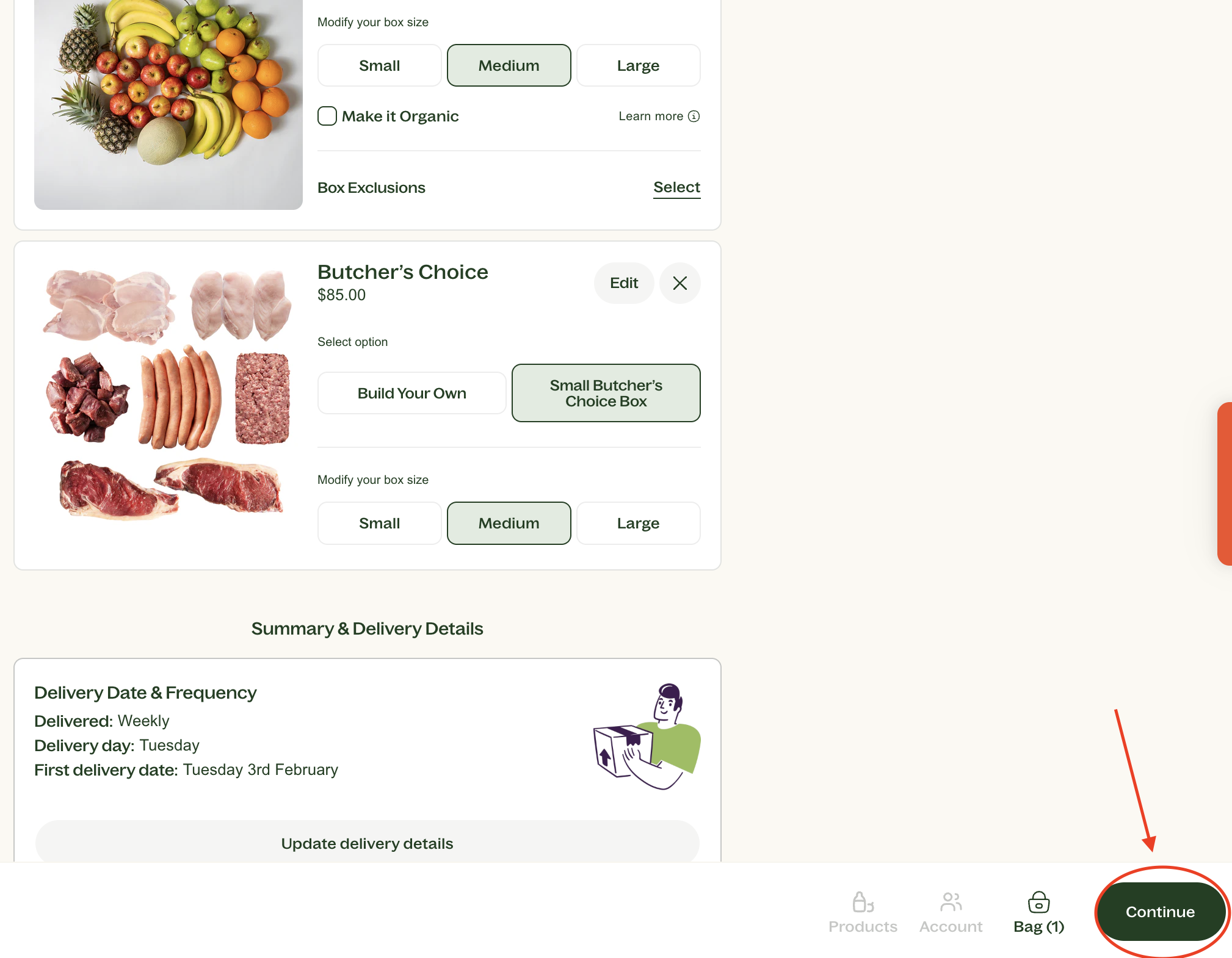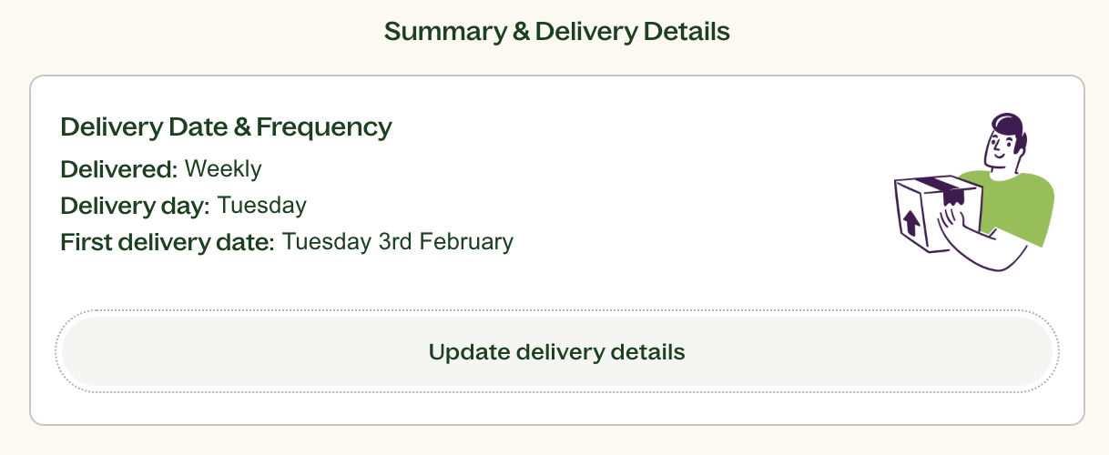 - Select your delivery date and frequency